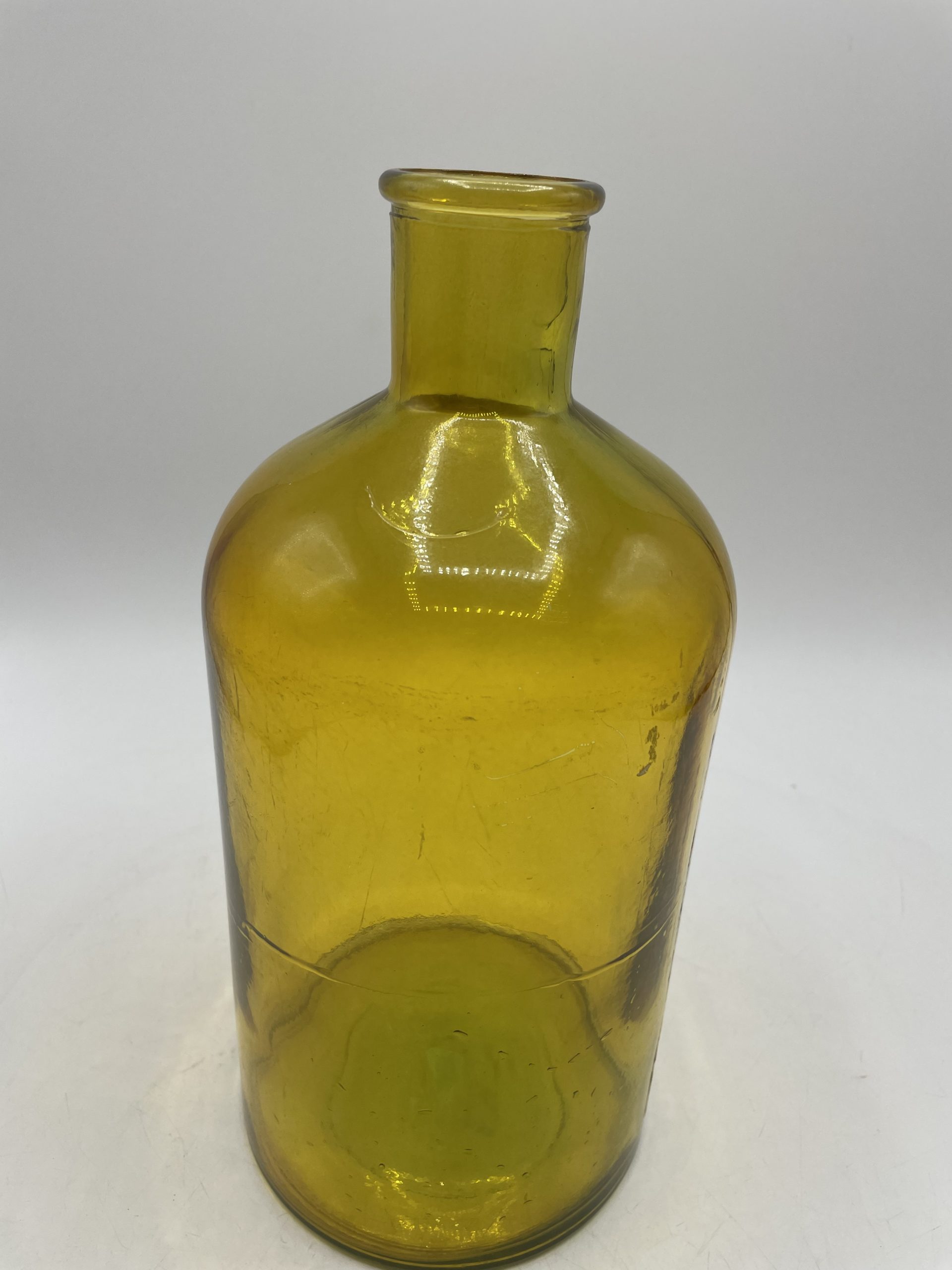 On craque d’amour pour cette jolie bouteille vintage. En verre soufflé, la bouteille a une jolie couleur ambrée hyper tendance. Avec son goulot large, elle servait aux apothicaires et autres pharmaciens pour réaliser des concoctions ou des sirops et les garder au sec en refermant la bouteille avec un gros bouchon de liège. Vintage, des traces d’usure sont à prévoir sur la bouteille (cf photos) jolies marques du temps passé. Une magnifique bouteille pour une déco vintage ou bohème transformé en un joli vase avec des fleurs séchées !